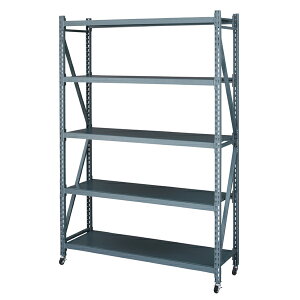 耐荷重300kg。重い物の収納に! 倉庫や工場に適した中量スチールラック耐久性に優れた棚板と堅牢な支柱のスチール製ラック。組立や解体が簡単なボルトレス仕様。移動ができるウレタンキャスター付き。幅1200×奥行750×高さ1800mm(...