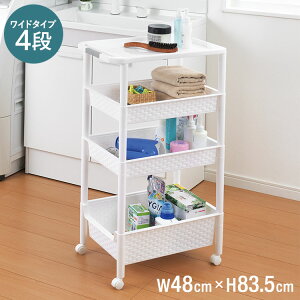 ■商品説明文キャスター付きで移動がラクラク行えるワゴンラック。樹脂製のため錆びず、軽量です!キッチン・倉庫・ランドリースペースなど、生活のスキマに収納をプラス。空間に馴染みやすいホワイトカラーはオフィスでも使用しやす