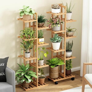 フラワースタンド 花台 プランタースタンド 3段 4段 5段 7段 竹製 ガーデニング 多肉植物スタンド キャスター付き 移動ラクラク 園芸ラック 観葉植物 多肉 鉢植えスタンド