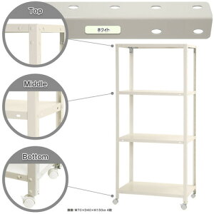 特長 ●中段の変更が非常に簡単なスチールラックです。 仕様 ●間口(mm):700 ●奥行(mm):450 ●高さ(mm):1500 ●色:ホワイト ●棚段数(段):4 ●均等積載量(kg/段):40...