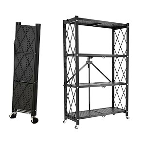 【送料無料】メタルラック キャスター付き 折りたたみ式 工具不要組立簡単 収納ラック スチールラックキッチンラック 防サビ加工食器棚 (ブラック, 4段)ブランド色ブラックモデル商品説明【商品概要】「組立簡単」...