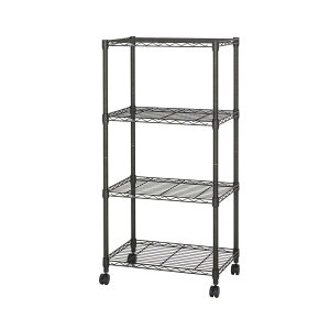 耐荷重300kg。重い物の収納に! 倉庫や工場に適した中量スチールラック耐久性に優れた棚板と堅牢な支柱のスチール製ラック。組立や解体が簡単なボルトレス仕様。移動ができるウレタンキャスター付き。幅900×奥行750×高さ1800mm(4段)。