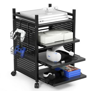 【商品仕様一年間保障提供】?サイズ:約幅46x奥行き37x高さ63cm?スチール:粉体塗装(錆びにくい)?キャスター:プラスチック?静止耐荷重:上棚板/約15kg、各中棚板/約5kg、下棚板/約5kg、コントローラースタンド/約2kg...