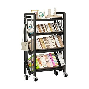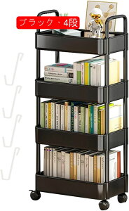 【送料無料】ファイルラック ファイルワゴン 4段 本棚 幅50×高さ118.3cm 回転キャスター付き 制動可能 スチール製 大容量 書類整理 教科書 漫画 雑誌 収納棚(ブラック) 斜め棚 出し入れしやすい...