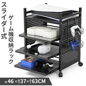 商品情報商品についてサイズ 幅46*奥行37*高さ63cm(キャスター含め)材質本体 スチール(粉体塗装)キャスター プラスチック静止耐荷重棚板 約10kg/棚板カゴ 約2kgパンチングボードで排熱しやすいゲーム機ラックの棚板はパンチ...