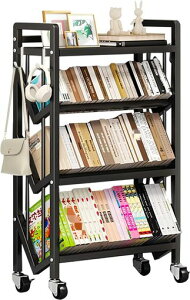 上段から取り出しやすく、雑誌や教科書の整理がスムーズです。 【ラクラク移動設計】360度回転キャスター付きで自由に動かせ、安全ロック機能つきで安定します。 【省スペースに最適】幅わずか21.5cmの