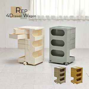 REP 4ドロワーワゴン RELS0219 キャスター付きの本体を回転させることで側面4面すべてを効率的に使える、デザイン性と機能性に優れた収納家具です。180度回転するスライドトレイや、ボトル類の保...