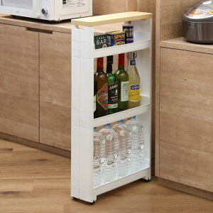 わずかなすき間を小物収納庫に!どこにでもあるわずかなデッドスペースに調味料やボトル類をすっきり収納。まっすぐ動くコロ付なので、引出しの間隔で出し入れできます。