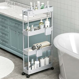キッチンワゴン 隙間収納 キャスター付き 18cm ペットボトルラック 冷蔵庫横 洗面所 収納 隙間ラック 3段 4段 スリムワゴン 細い棚 調味料棚 移動便利 頑丈 お手入れ 組立簡単 多機能