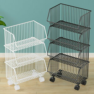 バスケットは引っ掛けるだけで取り外し可能なので、段数を変更したり、バスケットの順番を入れ替えたりできます。キャスター付きで移