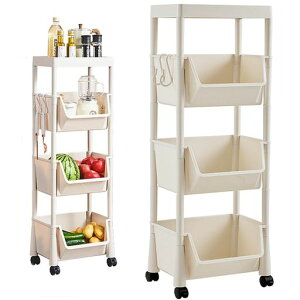 (中国)【カラー】ベージュ【サイズ】2段、3段、4段、5段【重量】約2.7KG、約3.7KG、約4.8KG 約5.4KG【移動便利】360°回転できるキャスター付きで移動しやすく、ハンドル付きで、移動時に片...