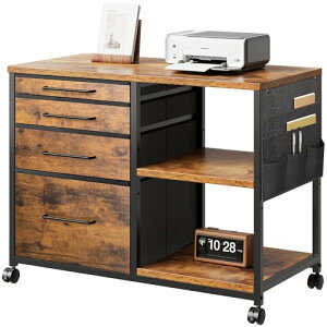 サイドキャビネット デスクワゴン 布製 袖机 層板付き サイドワゴン 4段 オフィスワゴン A4対応 プリンター台 大容量 キャスター付き デスク下収納 幅750*奥行400*高さ650mm ビンテージブランド:...