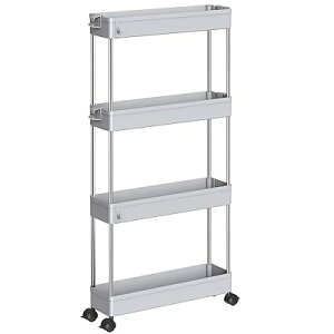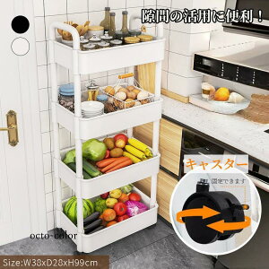 キッチンワゴン 隙間収納 キャスター付き 13cm 18cm 22cm ペットボトルラック 冷蔵庫横 洗面所 収納 隙間ラック 3段 4段 スリムワゴン 細い棚 調味料棚 (13.5cm-[四段式],...