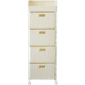 水に強い樹脂製で、湿気に強くお手入れも簡単。4段の引き出しには洗濯物やタオルを分類して収納でき、取っ手付きなので引き出し単体の持ち運びも可能。キャスター付きで移動もスムーズ。ラタン調デザインがおしゃれで...