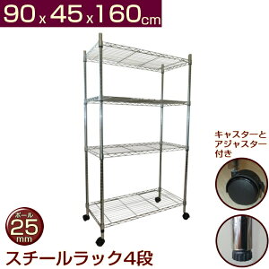4段で高さが160センチ。安心品質のメタルスチールラックです。 棚板の高さはお好みに応じて調整できます。 棚板を追加購入して段数を増やしたり、棚板を減らして使用することも可能です。 移動ができるキャスター(ストッパー付)と床に