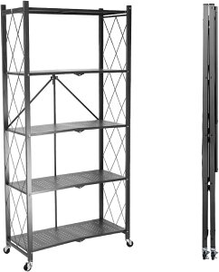 折りたたみラック 収納ラック スチールラック 棚 4段 幅71x奥行36x高さ125cm キャスター付きメタルラック 折り畳み棚 コンパクト 組立簡単 移動便利 防サビ加工(ブラック)ブランド色ブラッ...