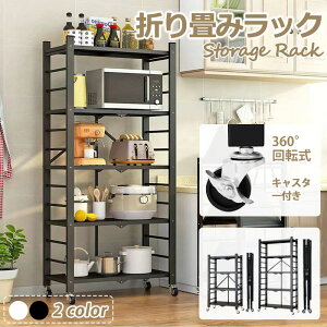 メタルラック5段 / 4段 / 3段 折りたたみ式 オープンラック 収納棚 キッチンラック シェルフ キャスター付き 移動便利 食器棚 防サビ加工スチールラック キャスター付き