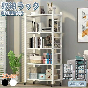 Zerzuo 折りたたみラック 4段 幅71×奥行き34×高さ127cm 収納スチールラック 折り畳み棚 メタルラック折り畳み オープンシェルフ キャスター付き 移動式ラック レンジラック 頑丈なキッチンラック...