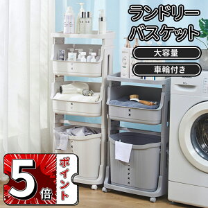 ランドリーバスケット スリム キャスター付き3/4段 大容量 斜め