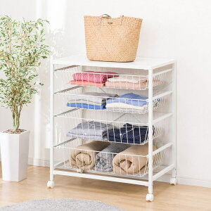 多彩な収納スペースでたっぷり収納できるワイヤーラックです。キャスター付きで移動も出し入れもらくらく。お掃除の時は簡単に移動ができます。脱衣場などにもぴったり。ご注文時のお時間指定は〔玄関先迄納品商品〕の表記がある項目