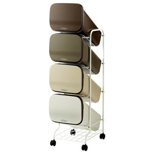 (19L×4段)。■素材本体・フタ・袋止め/ポリプロピレンフラップ/ABS樹脂キャスター/ナイロンフレーム/鋼(粉体焼付塗装)。■生産国ベトナム。■特徴冷蔵庫等の横に収まる幅34cmのスリム形状。