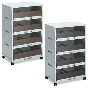 フラップ/ABS樹脂、歯車・キャスター/ナイロン樹脂、フレーム/鋼(紛体塗装) 容量:約80L(19L×4段) ミックス 原産国:ベトナム 狭いスペースにおける幅35cmのスリム形状