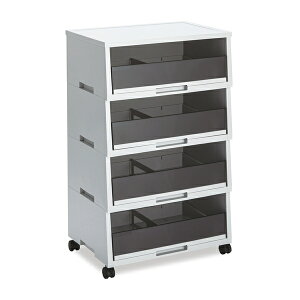 フラップ/ABS樹脂、歯車・キャスター/ナイロン樹脂、フレーム/鋼(紛体塗装) 容量:約80L(19L×4段) ホワイト 原産国:ベトナム