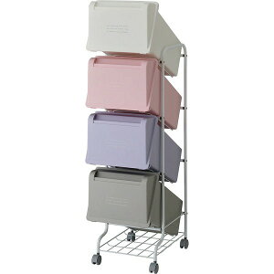 多段式ダストボックス、Nコンテナスタイル5。色はホワイト・ピンク・ラベンダー・ミディアムグレー、21L×4段です。■商品スペック種類:本体+フタ+スタンド容量:84L寸法:W315×D525×H1199mm重量:6573g色:ホワイト...