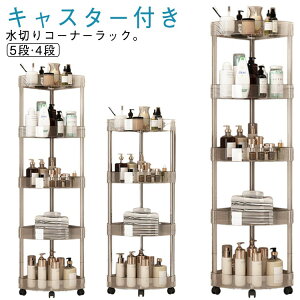 キャスター付き水切りコーナーラック。【5段・4段】【移動しやすい】キャスターが3つ付属し、360°回転自在、軽く静かに移動でき、安心して使用できます。リビング、キッチン、バスルーム、トイレ、寝室などに適しています...