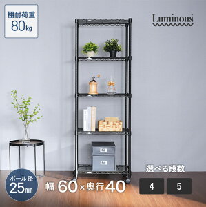 商品シリーズ [25mm] ルミナス ノワール フリーラック 幅60 奥行40 4段 外形寸法 幅61×奥行41×高さ125.5cm シェルフ内寸 幅53.5×奥行33.5cm ポール分割サイズ [...