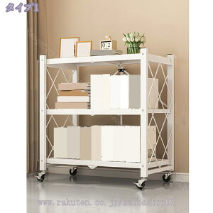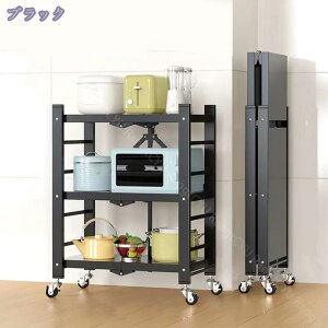 4段スチールラック 折りたたみ式 キャスター付き 棚 メタルラック 収納ラック 耐荷重120kg 幅70×奥行34×高さ127cm レンジ台 キッチンラック 収納 食器棚 移動便利 シェルフ 組立簡単