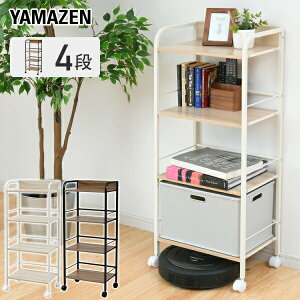 山善 YAMAZEN ラック 4段 キャスター付き YZCR-4 本体サイズ 幅42×奥行27.5×高さ101cm 重量6.8kg。材質 フレーム:スチール(粉体塗装) 棚板:合成樹脂化粧繊維板(メラミン)...