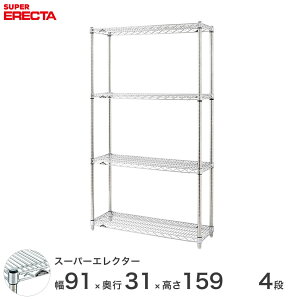 スーパーエレクター Pポールタイプ ダイカスト・アジャストボルト付き 4段 外形寸法 幅91.0x奥行30.7x高さ158.7cm シェルフ内寸(約) 幅83.5x奥行23.2cm ポール長さ 158.7cm...