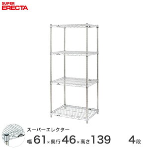 スーパーエレクター Pポールタイプ ダイカスト・アジャストボルト付き 4段 外形寸法 幅91.0x奥行35.9x高さ138.4cm シェルフ内寸(約) 幅83.5x奥行28.4cm ポール長さ 138.4cm...