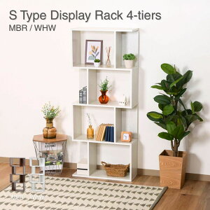 目を惹くデザイン! S型ディスプレイラック4段 アシンメトリーなラック カラー:ホワイトウォッシュ 【商品サイズ】 幅590×奥行240×高さ1410mm 耐荷重(天板):5kg 耐荷重(棚板):5kg...