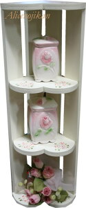 コーナーにも使えるハート型ローズの3段ラック 棚ごとに゜の薔薇模様が施されています。 細かく豪華なバラの模様はプリンセスもお気に入り たてでも 横でも使える優れもの 置いても掛けても重ねても使えます。 サニタリーなどでペーパ