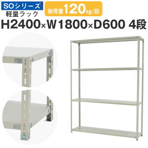 商品サイズ(mm)高さ2400×幅1800×奥行600。段数4段。自重51.12kg。耐荷重1段あたり120kg(最大全体で600kg)。形式単体形式。カラーホワイトグレー(白)【メラミン焼付塗装】。素材スチール...