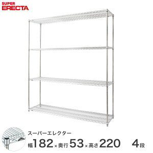 スーパーエレクター Pポールタイプ ダイカスト・アジャストボルト付き 4段 外形寸法 幅182.1x奥行53.6x高さ219.7cm シェルフ内寸(約) 幅174.6x奥行46.1cm ポール長さ 219.7cm...
