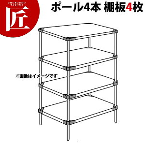 ステンレスエレクター PSポールタイプ ダイカスト・アジャストボルト付き 4段 外形寸法 幅106.2x奥行46.0x高さ158.7cm シェルフ内寸(約) 幅98.7x奥行38.5cm ポール長さ 158.7cm...