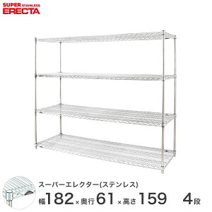 ステンレスエレクター PSポールタイプ ダイカスト・アジャストボルト付き 4段 外形寸法 幅182.1x奥行61.3x高さ158.7cm シェルフ内寸(約) 幅174.6x奥行53.8cm ポール長さ 158.7cm...