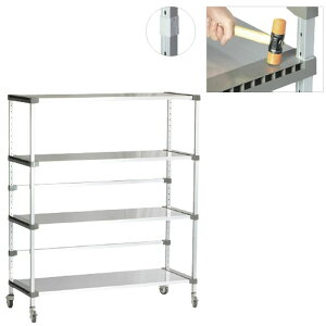 型番00856227 商品説明●抗菌クリアコーティング(抗菌アクリル樹脂)の防錆加工により、耐食性に優れています●棚1段(間口1220mm)あたり250kgの耐荷重で、重量がかかるほど固定強度が増します●スプリング構造の柱と棚板による...