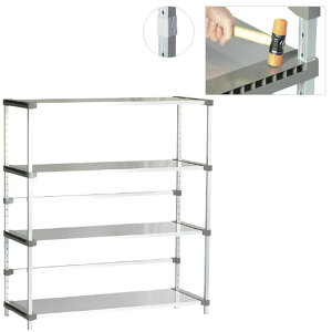 304ソリッドエレクターシェルフ4段 エレクターMSS1220S・PS1590(D460●耐錆・耐薬品性に優れ、衛生管理が最重要視されるクリーンな環境での使用に最適です。●棚板コーナー部はSUS304ステンレスダイカスト製...