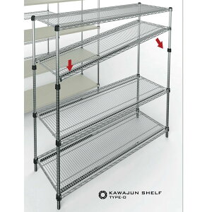 ●抗菌クリアコーティング(抗菌アクリル樹脂コーティング)の防錆加工により、耐食性に優れています。 棚1段(間口1220mm)あたり250kgの耐荷重(分散荷重)を発揮、重量がかかるほど固定強度が増します。 テーパー固定方式により、棚板...