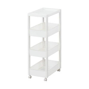 すきまにピッタリ。幅27cmのワイドタイプ4段のワゴンです。●スタイリッシュなホワイトカラーで、キッチンや洗面所などあらゆるシーンでのストック収納におすすめで
