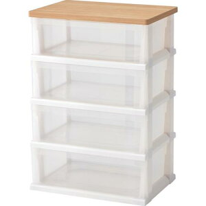 木製天板ストッカー550組立式4段 メープル●ナチュラルなデザインなので、空間に馴染みます。●工具不要!柱を取り外し、差し込むだけの簡単組み立てです。●引き出しは前後どちらからでもセット可能。引き出す向きを前後2方向から選べ