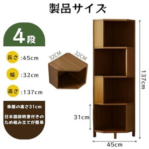 本体サイズ:幅61x奥行23x高さ133.5cm ? 本体重量:約13kg ? 素材:楠竹 ? 棚の耐荷重:約20kg/段 ? 転倒防止設計あり、4段式で、本とか小物とかの収納や展示にぴったりのオープンシェルフです。 ?...