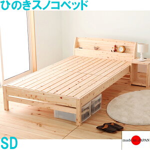 棚コンセント付き国産ひのきベッド ノーマルすのこタイプ セミダブル サイズ!国産ひのきをふんだんに使用することで、リラックス効果はもちろん、抗菌・防虫効果を得られます。コンセント付きの棚はスマートフォンなどを充電しながら