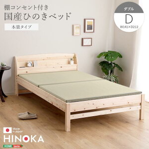 棚コンセント付き国産ひのきベッド 本畳タイプ ダブルサイズ!国産ひのきをふんだんに使用することで、リラックス効果はもちろん、抗菌・防虫効果を得られます。コンセント付きの棚はスマートフォンなどを充電しながら置ける優れもの
