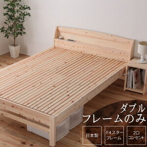 お問い合せ番号:aacy0221 商品名:ダブル★棚コンセント付き国産無塗装ひのきすのこベッド島根県産・高知四万十産 高さ4段調整 サイズ:幅141×長さ212×高さ71cm カラー...