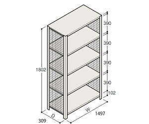商品名:イトーキ/ITOKI 軽量棚 ERR金網型 H1800×W1500×D300 有効棚 4段 1個 ●オフィス、工場、倉庫等、さまざまな物流環境の幅広いニーズにお応えする軽量棚●クラス・トップ水準の棚板...